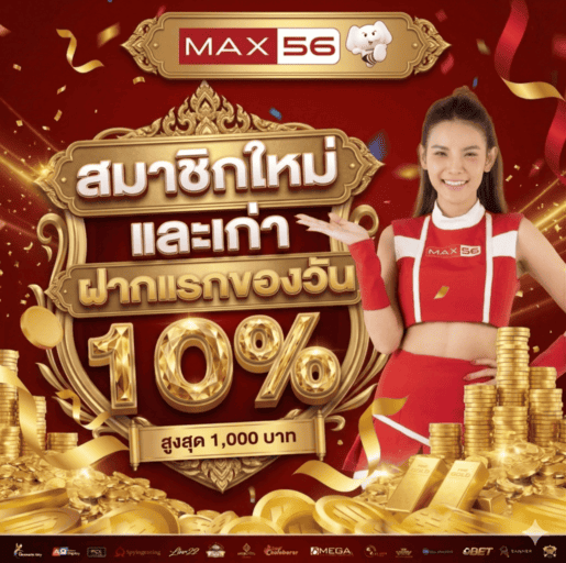 โปรโมชั่น ❤️ MAX56 ฝากแรกของวัน รับโบนัส 10% สูงสุด 1,000 บาท
