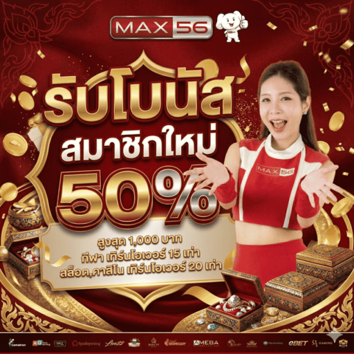 สมาชิกใหม่ ❤️ MAX56 รับโบนัส 50% สูงสุด 1,000 บาท
